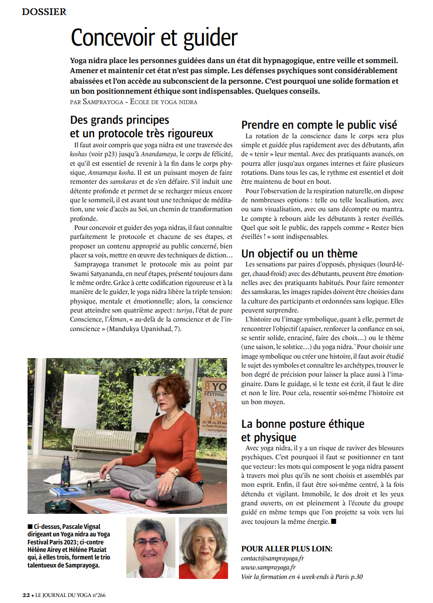 Extrait du Journal du Yoga sur le thème du yoga nidra
